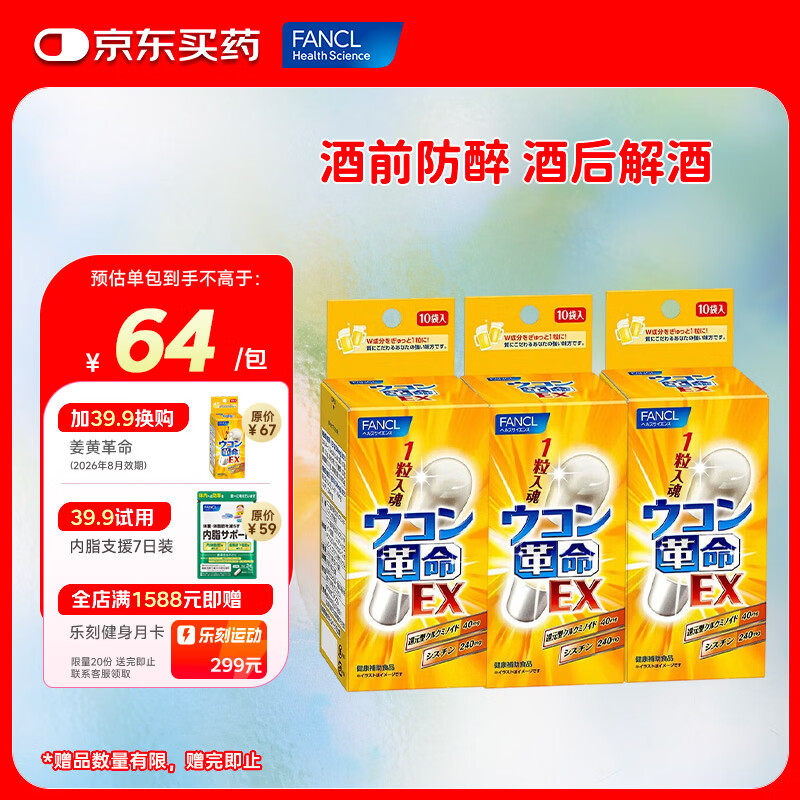 FANCL HealthScience芳珂姜黄革命养护肝还原型姜黄素解酒加班应酬 姜黄革命10粒/袋*3