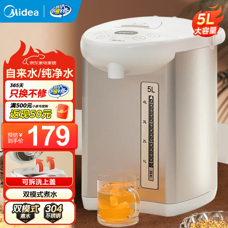美的(Midea)电热水瓶电热水壶全自动断电保温控温恒温食品级304不锈钢5L大容量家用泡茶母婴冲奶神器饮水机 5L 【304不锈钢】店铺热卖