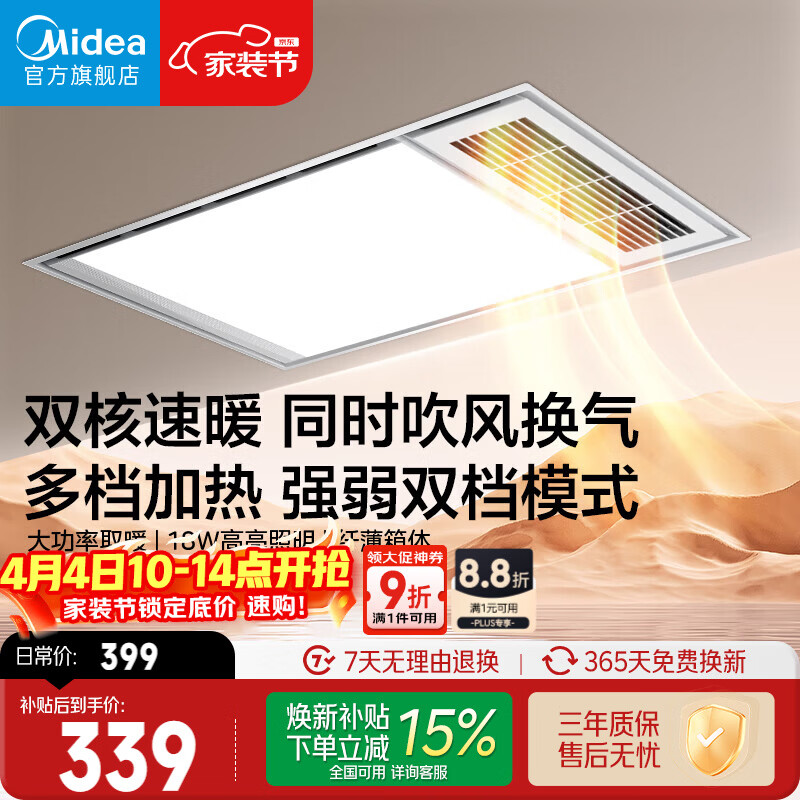美的(Midea)风暖浴霸钢铁侠系列照明排气一体取暖换气暖风机G3P