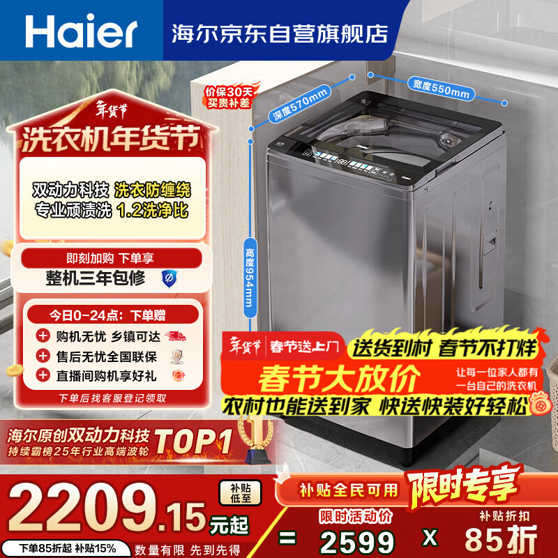 海尔(Haier)云溪 全自动波轮洗衣机10KG 双动力防缠绕 一级能效 家电国家补贴以旧换新京东自营 XQS100-BZ659