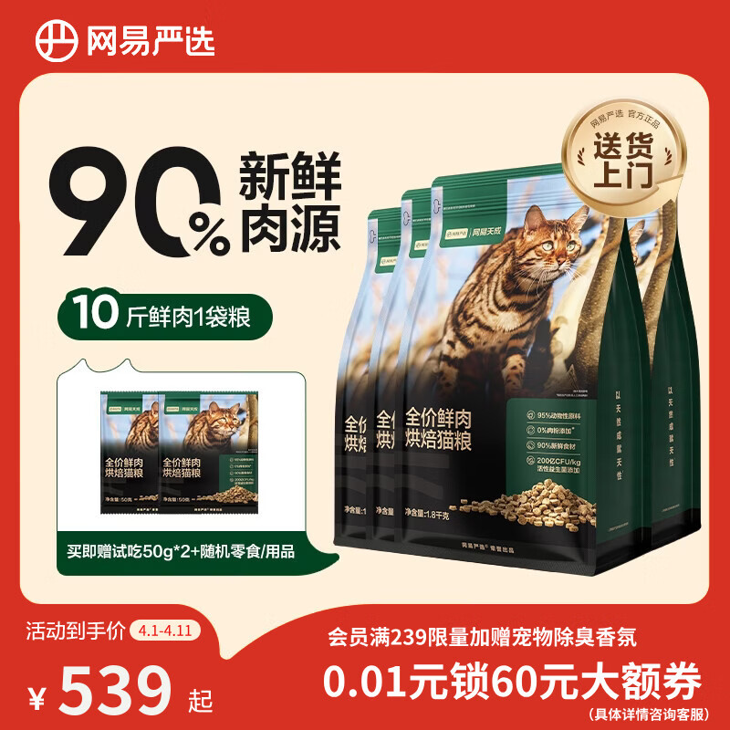 网易严选全价高鲜肉烘焙猫粮 成幼猫主粮无抗鲜鸡肉助消化长肉护肠胃7.2kg