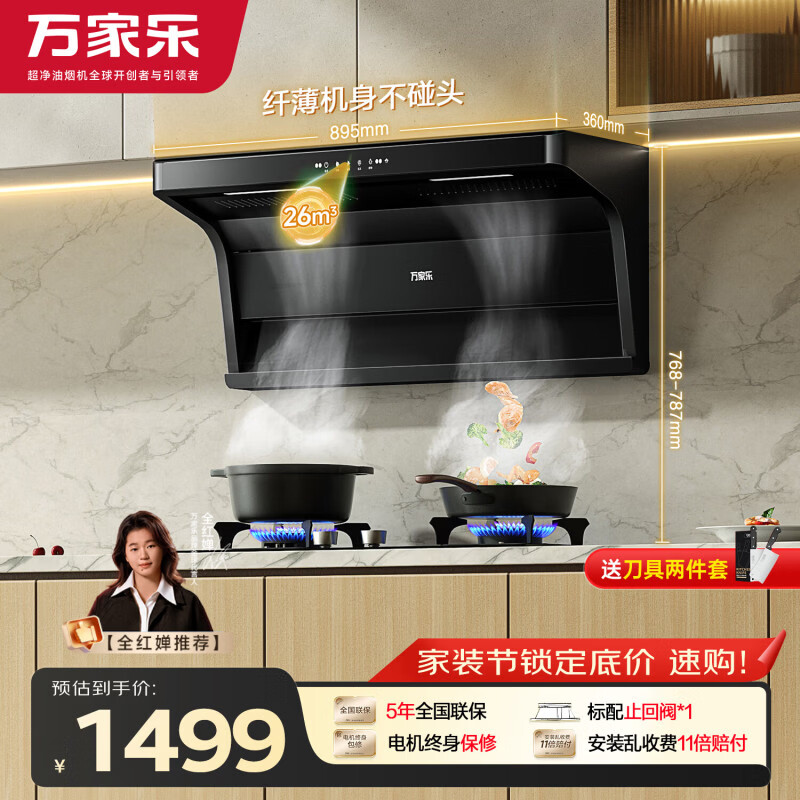 万家乐油烟机【小鲸喜AK6】26立方爆炒大吸力顶侧双吸不碰头 智能烟灶联动家用挥手智控自清洗抽吸油烟机