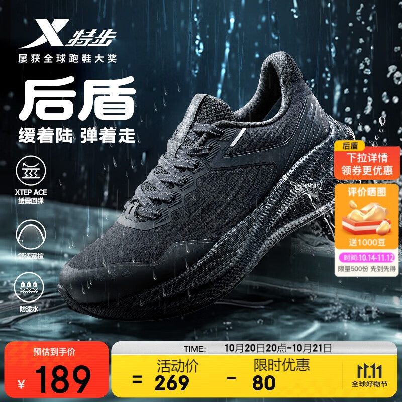 特步后盾跑步鞋运动鞋男鞋冬季防水轻便减震回弹防滑休闲慢跑鞋黑色