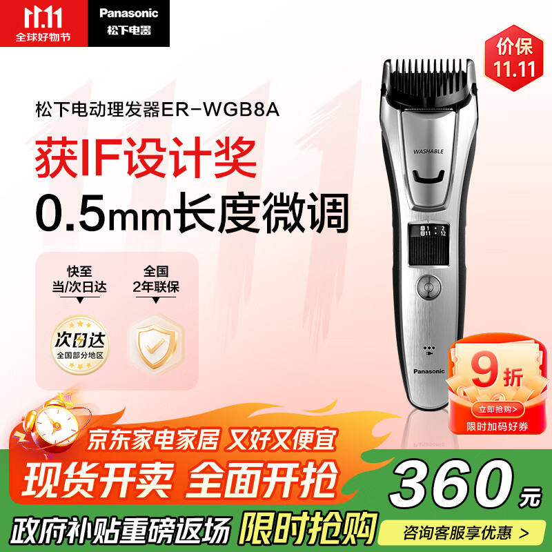 松下(Panasonic)电动理发神器 电推子剃头多功能理容器 生日节日礼物送男士老公 ER-WGB8A