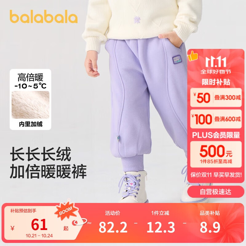 巴拉巴拉童装儿童长裤珊瑚绒束脚裤男童女童冬装2024裤子厚款208424108230