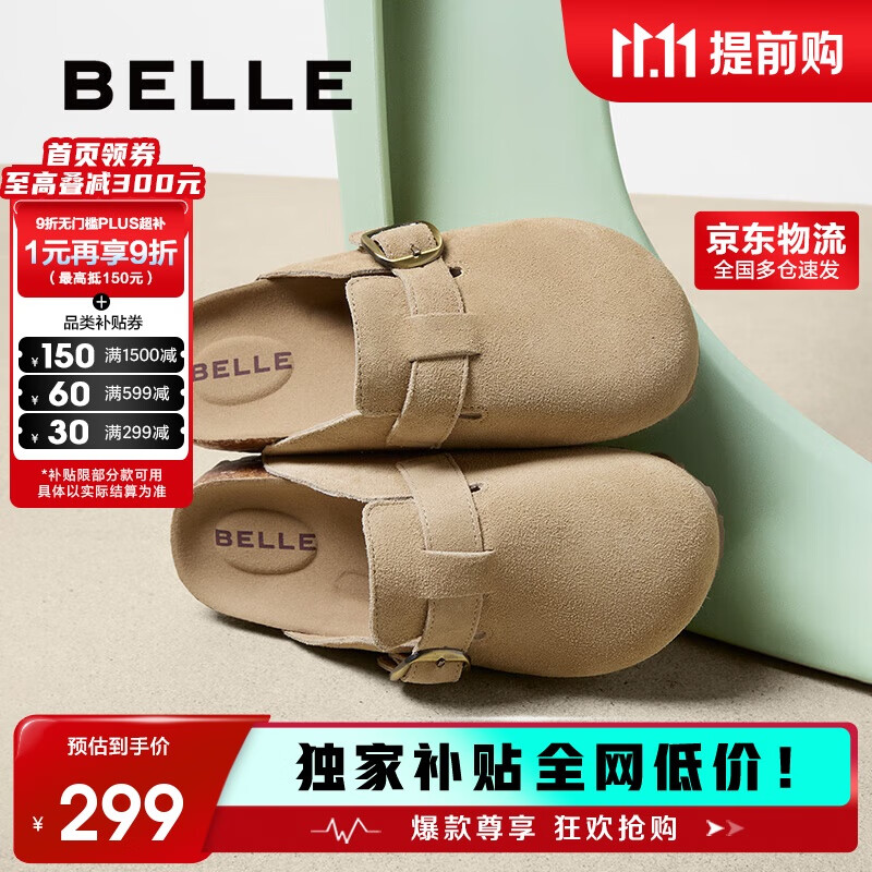 百丽舒适勃肯鞋2025女休闲百搭可外穿包头拖鞋B2591BH5 杏色 37