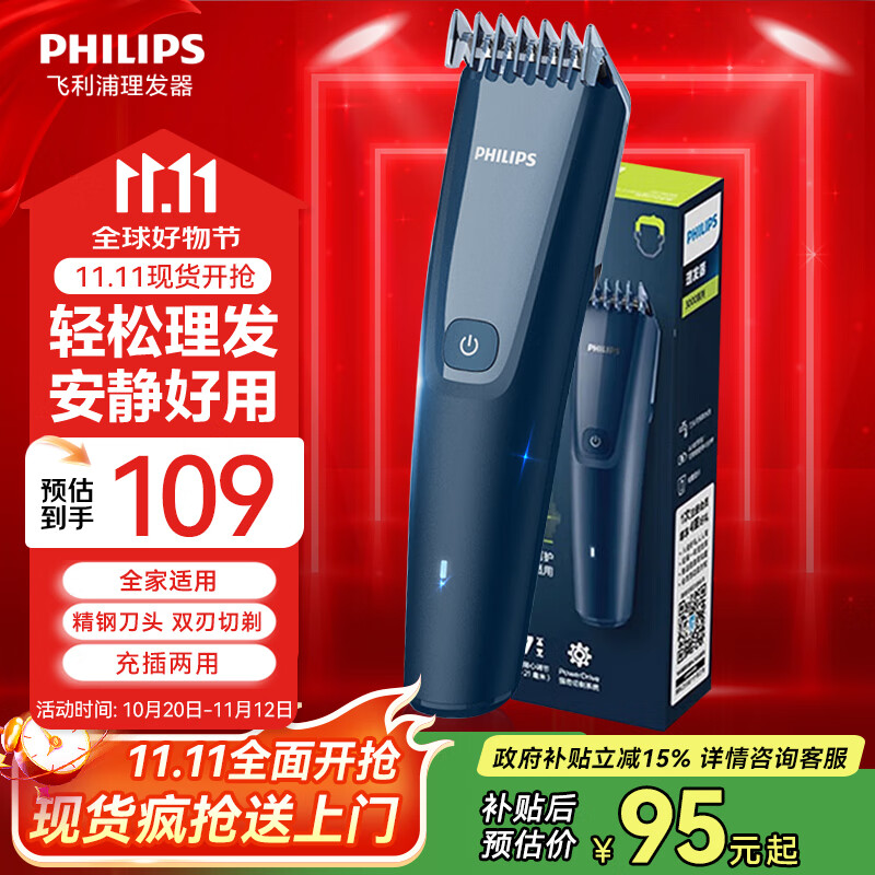 飞利浦(PHILIPS) 理发器家用成人儿童剃头电推子 低噪理发电推剪发器 充插两用精钢刀头USB充电理发 HC3688全家适用 【海军蓝】普通装