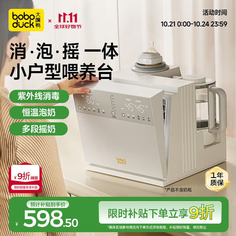 boboduck大嘴鸭紫外线奶瓶消毒柜 婴儿摇奶器 泡奶机三合一喂养台一体机 6279
