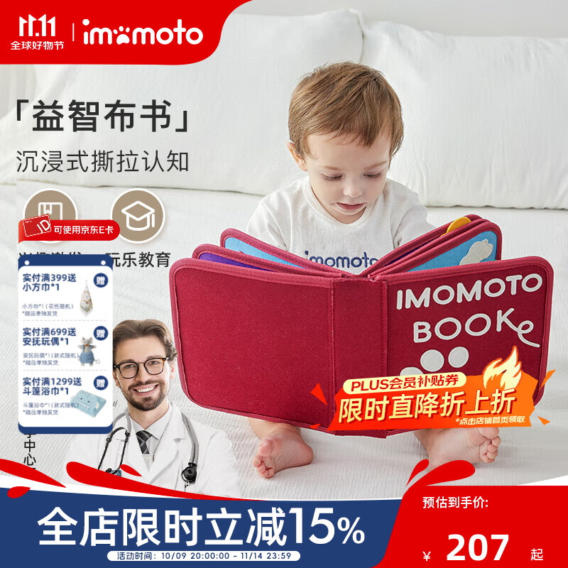 IMOMOTO撕撕书婴儿布书周岁生日礼物儿童早教玩具幼儿园满月礼 水果切切乐+益智撕撕书