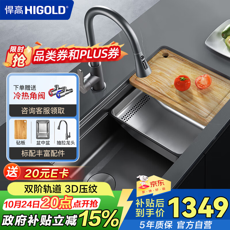 悍高(HIGOLD)厨房黑钛纳米阶梯式手工水槽304不锈钢洗碗池洗菜盆台下-以旧换新