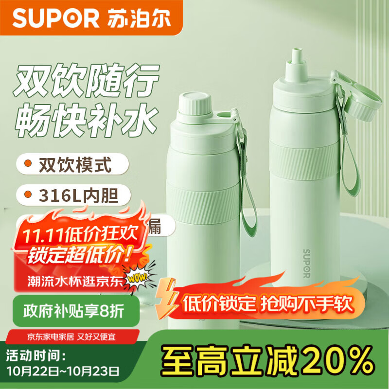 苏泊尔(SUPOR)保温杯316L不锈钢水杯男女中小学生便携保温车载双饮杯