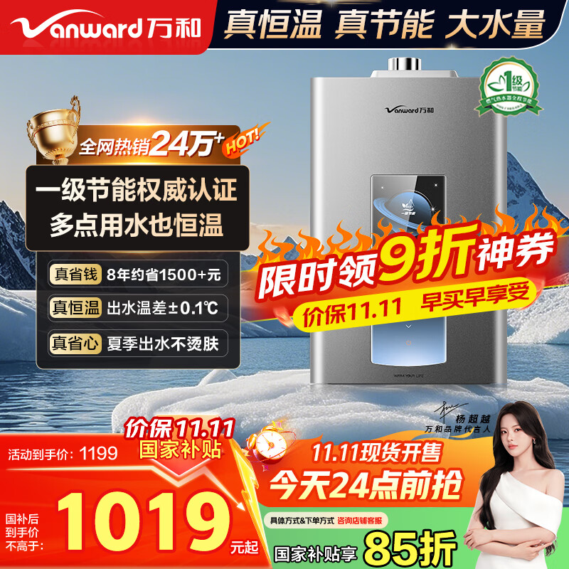 万和(Vanward)【ME5T16真节能认证】16升燃气热水器天然气【国家补贴15%】水气双伺服恒温 低水压启动