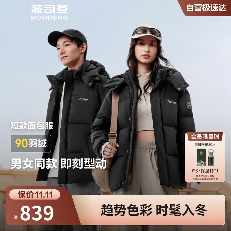 波司登25年冬季羽绒服男女情侣同款修身短款休闲加厚脱卸帽外套