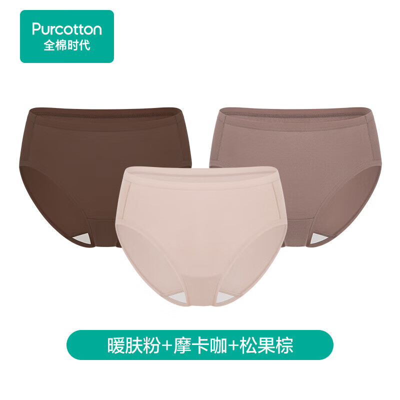 全棉时代女士内裤美拉德色7A抗菌透气40支细绒棉高弹包臀女式内裤