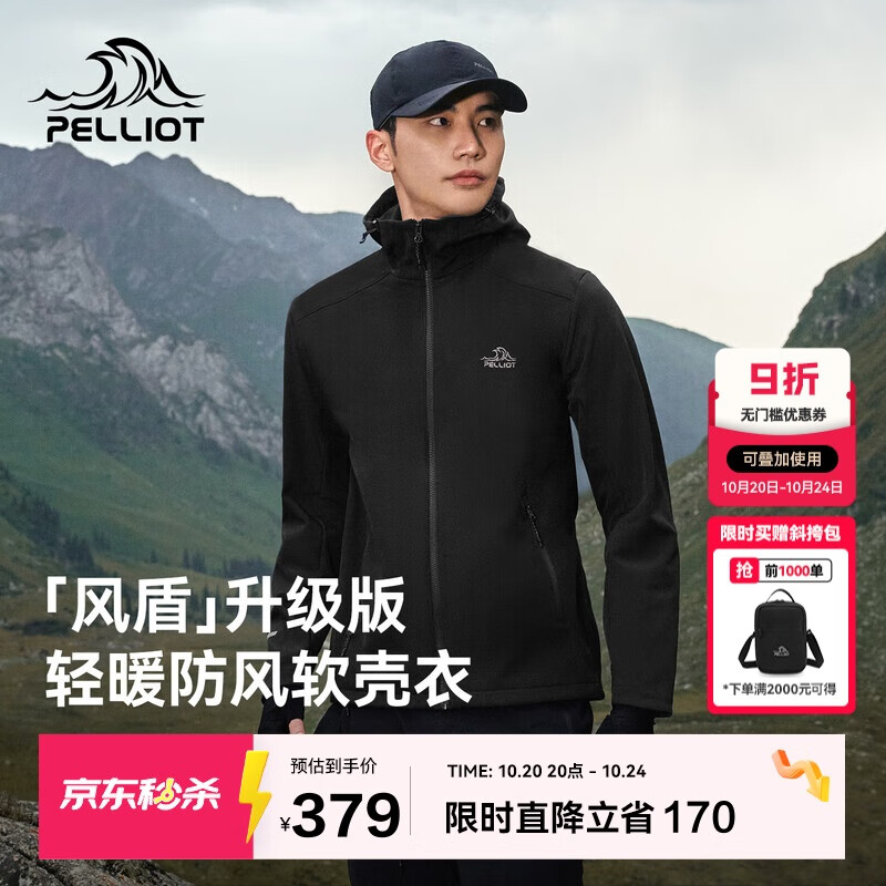 伯希和(Pelliot)[风盾]户外冲锋软壳衣男秋冬耐磨高弹防风外套女夹克115306017黑L