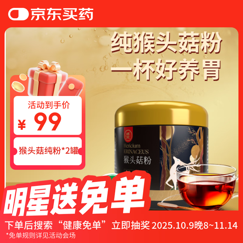 沛元 猴头菇有机粉100%纯粉养胃营养冲饮180g熟粉早餐冲饮营养补品2罐