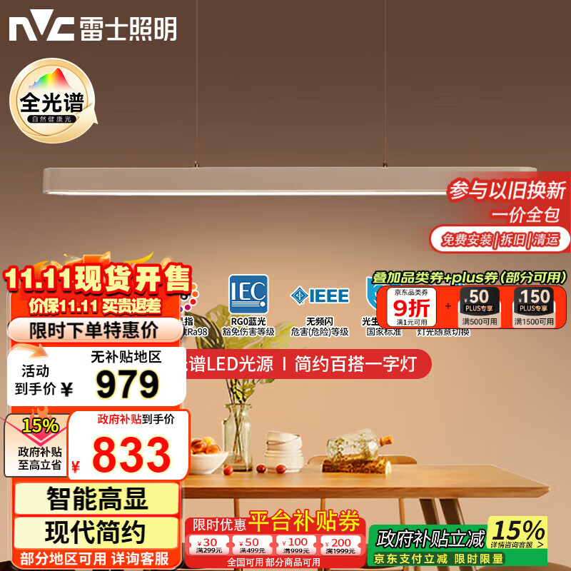 雷士(NVC)一字灯餐厅灯智能全光谱吸顶吊灯智能高显指长条餐桌WHDD53F/G-01
