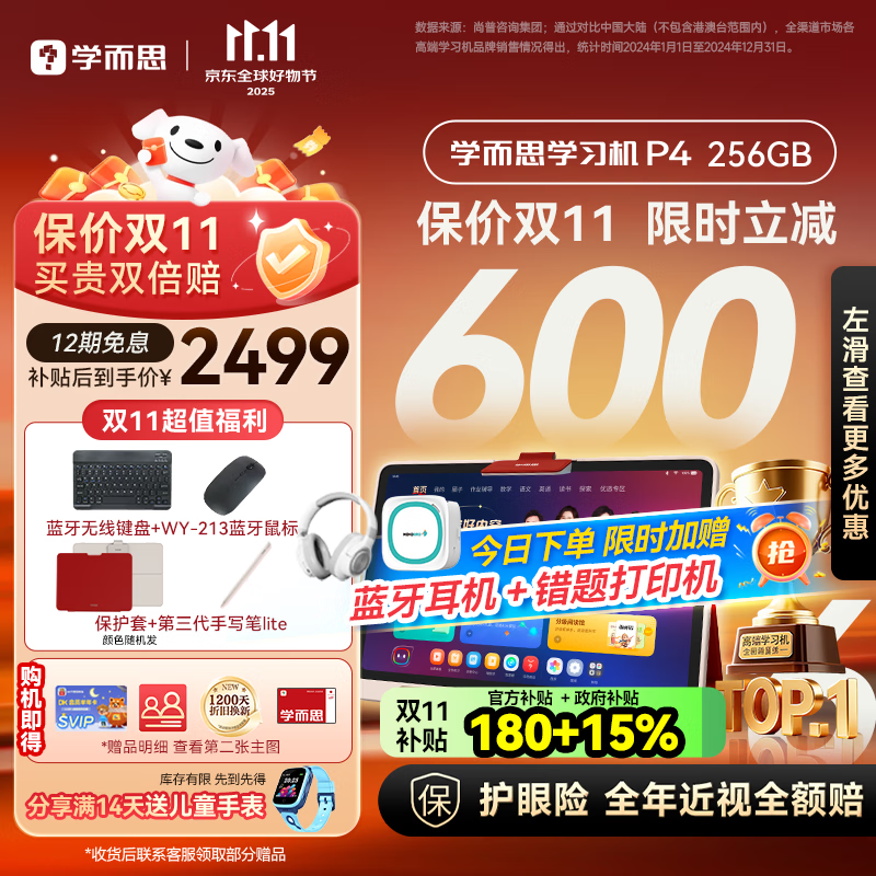 学而思学习机P4【国家补贴享85折】AI学习机性价比优选 学习平板电脑 启蒙小学初中高中12.1英寸 6+256GB