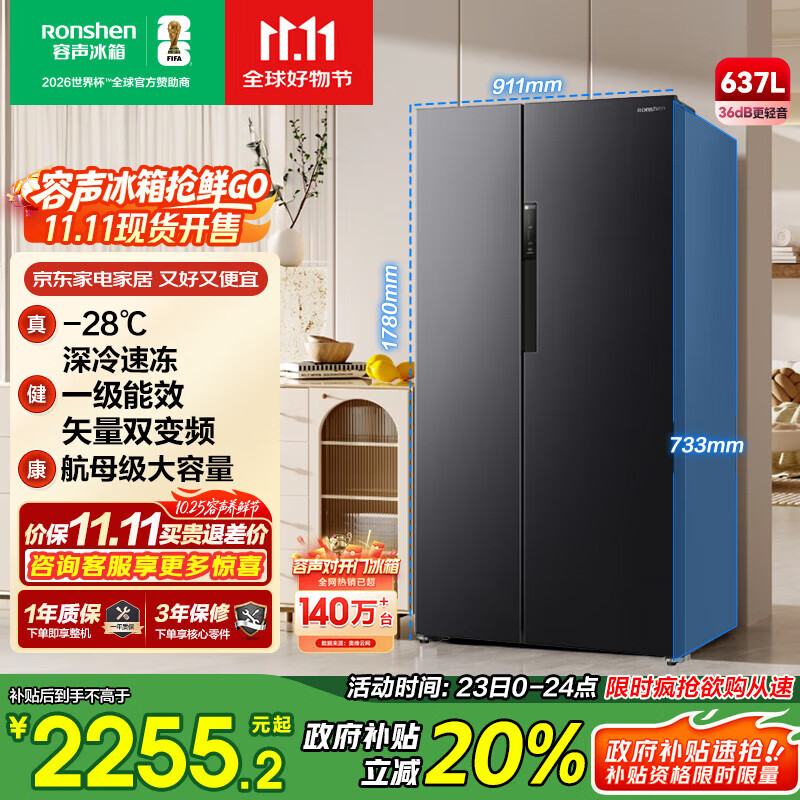 容声637升双开门对开门电冰箱家用一级能效风冷无霜变频节能超薄大容量BCD-637WD11HP以旧换新国家补贴