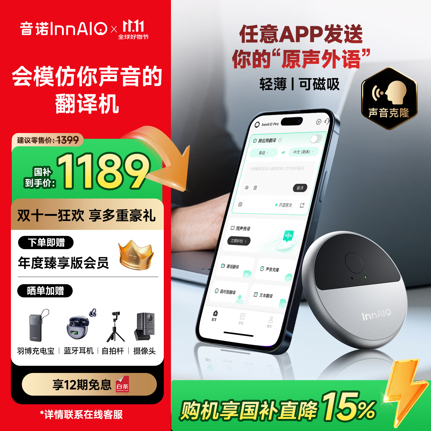 InnAIO音诺Type-C磁吸翻译机T10【声音克隆】跨应用同传多语种实时翻译器 熊猫色 出国神器随身小巧便携