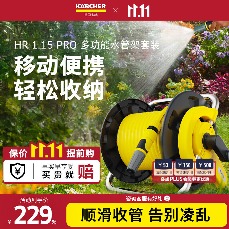 卡赫(KARCHER)洗车水管车水管软管 浇花水枪 园艺浇灌15米水管车HR1.15pro