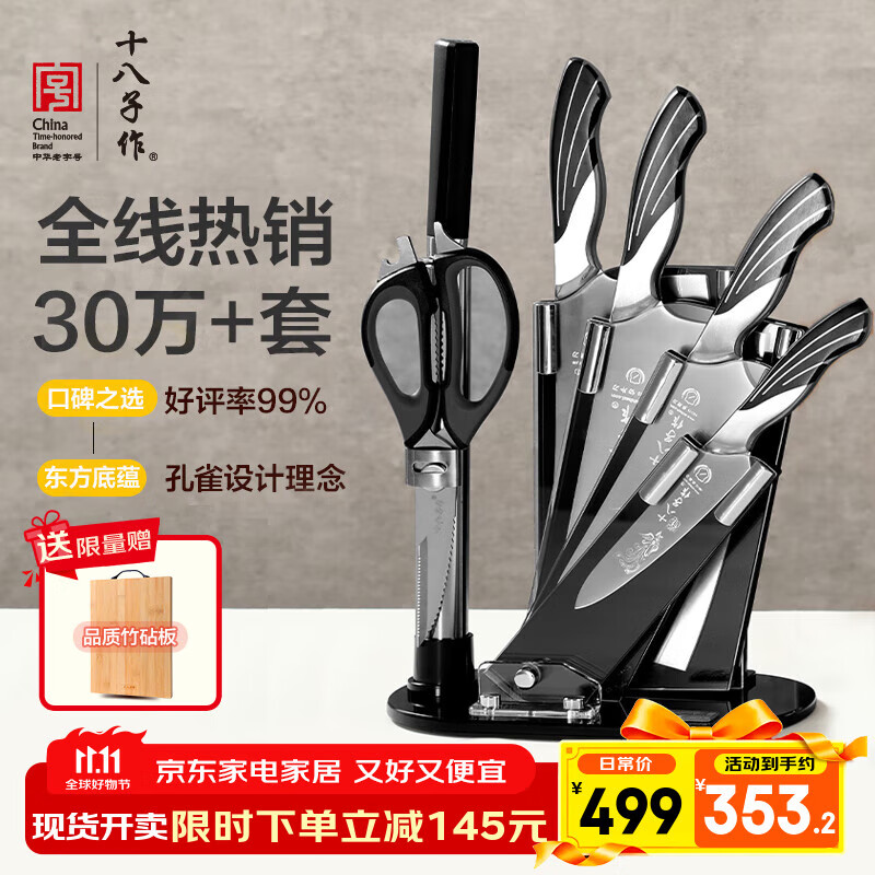 十八子作厨房刀具菜刀套装家用砧板砍斩骨刀剁切肉切片刀阳江十八子菜刀 雀之翎刀具套装【AS1309】 7件套