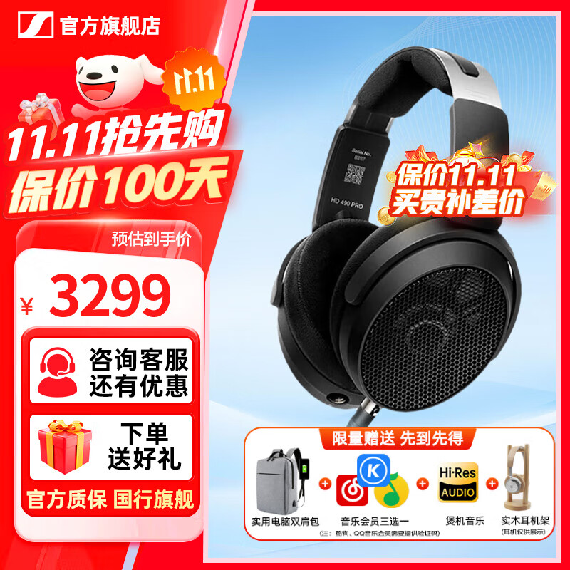 森海塞尔HD490PRO PLUS监听耳机有线头戴式耳机包耳开放式专业参考级录音耳麦送男朋友中秋国庆节生日礼物 HD490 PRO