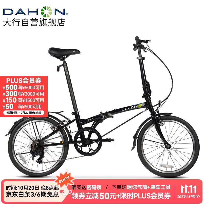 大行(DAHON)折叠自行车20英寸超轻6速通勤折叠单车HAT061 黑色