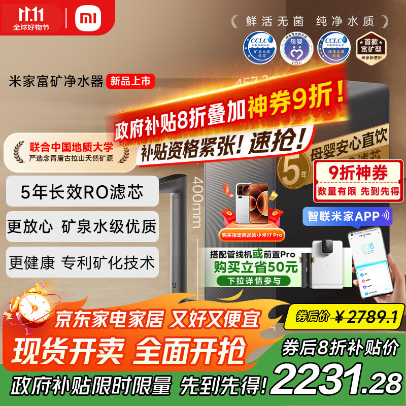 米家小米富矿净水器1200G 母婴级厨下家用 5年长效RO反渗透 富含矿物质 一级水效 MR1263-D