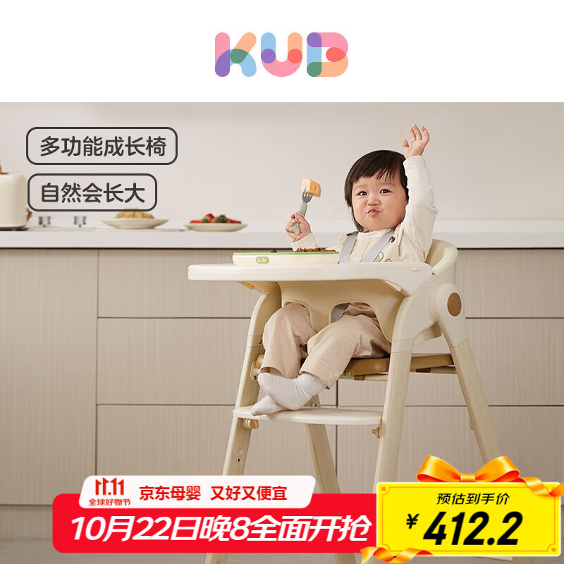 可优比(KUB)成长餐椅儿多功能吃饭餐椅宝宝餐椅儿童餐椅婴可折叠-米白色