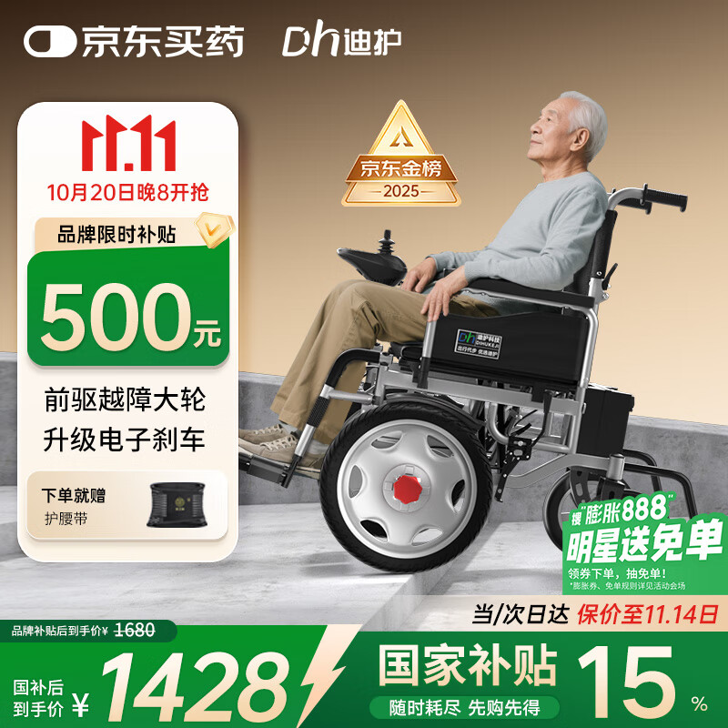 迪护电动轮椅车老人全自动轻便可折叠旅行专用智能超轻便携式家用代步