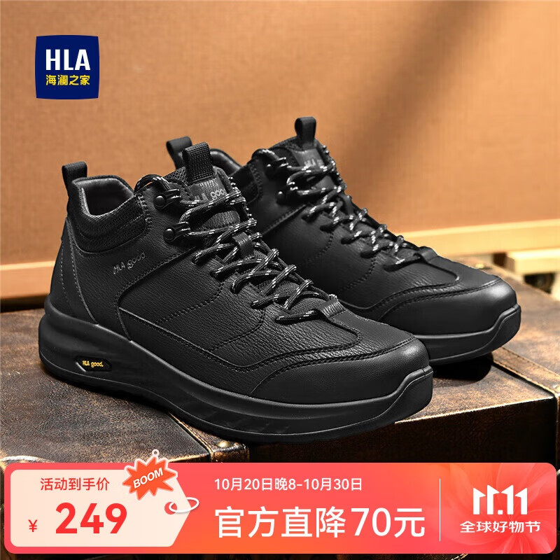 海澜之家HLA男鞋休闲男士透气增高户外登山鞋HAAXXM4EBH463 黑色42
