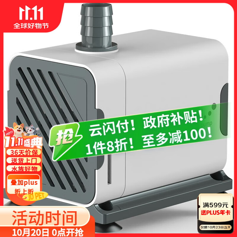 森森 小鲤鱼缸水泵小型潜水泵过滤泵抽水泵XQP-1000 15W