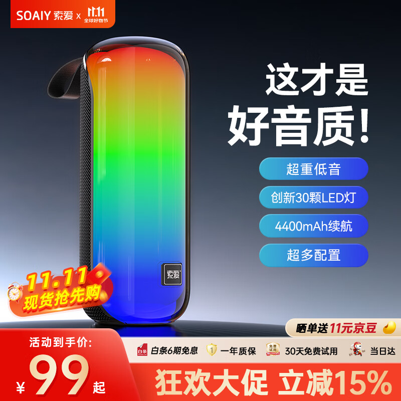 索爱(soaiy)S58MAX蓝牙音箱电脑音响重低音炮家用无线喇叭车载迷你桌面U盘户外炫彩便携大功率游戏收款