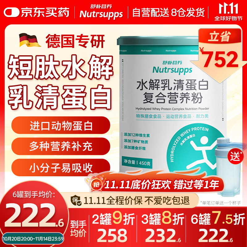 舒朴营养(Nutrsupps) 短肽水解乳清蛋白粉动物蛋白质粉术后营养品中老年孕妇 450g/罐