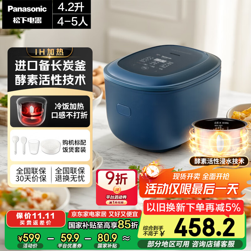 松下(Panasonic)【国家补贴】真香煲IH加热电饭煲4-5人多功能家用电饭锅4.2升智能预约不粘锅以旧换新SR-HK151-KB