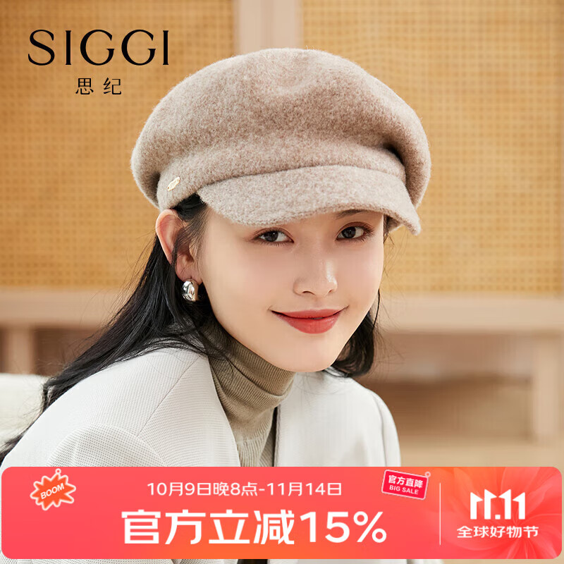 Siggi帽子女秋冬日系百搭绵羊毛贝雷帽时尚简约画家帽 摩卡棕