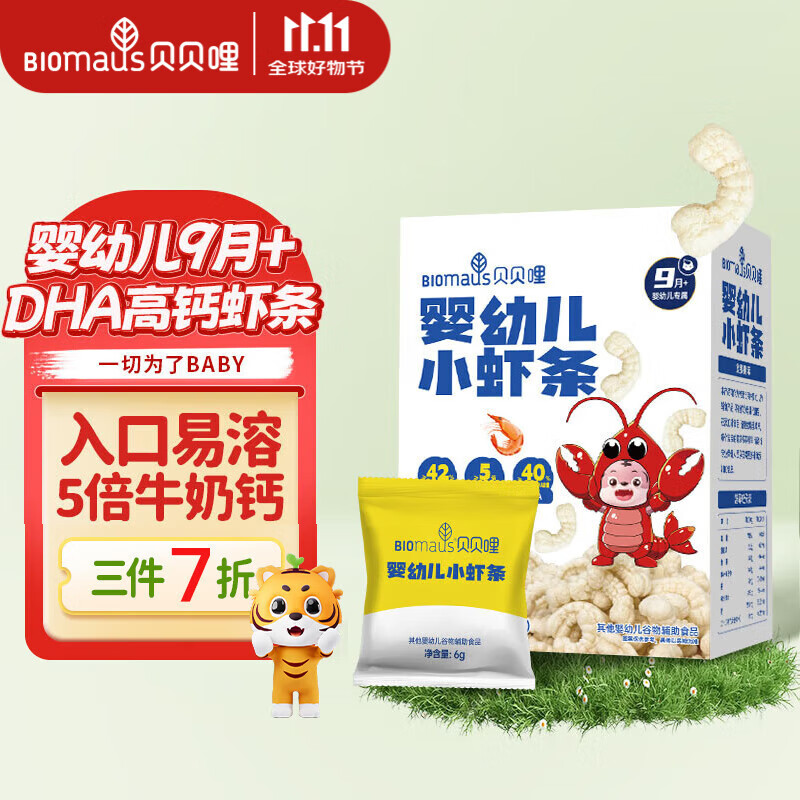 贝贝哩婴幼儿小虾条 宝宝婴儿零食 儿童磨牙饼干0添加小包装36g 9月+