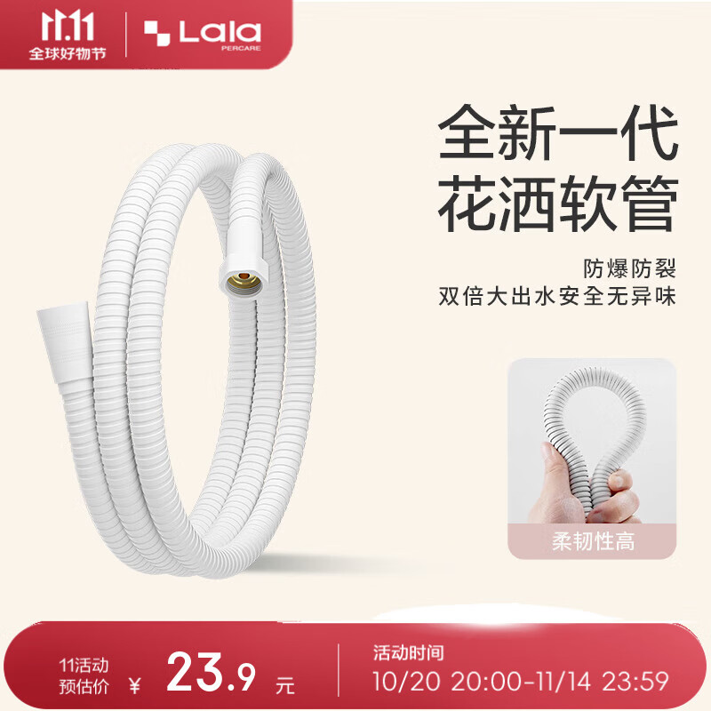 娜拉之夏(LALAPERCARE)1.5M花洒软管防爆防缠绕不锈钢白色增压花洒软管通用接口厨卫配件