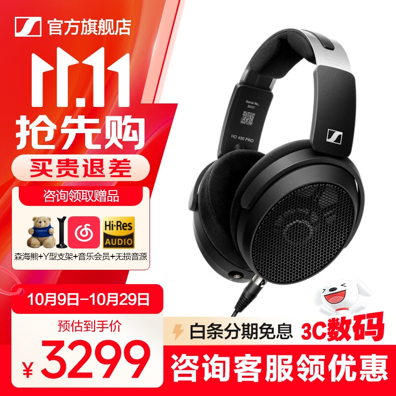 森海塞尔HD490ProPLUS/HD400pro监听耳机专业录音棚开放式有线生日礼开学礼物礼品头戴耳机 HD490 PRO【黑色】
