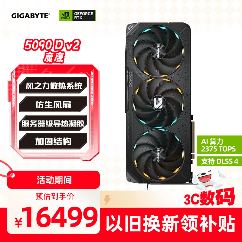 技嘉(GIGABYTE)5090 D v2显卡 魔鹰 GeForce RTX 5090 D v2 Gaming 24G DLSS4电竞游戏设计AI 【注册四年保】