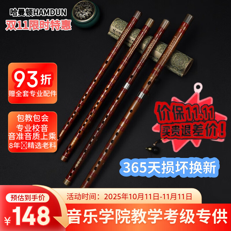 哈曼顿笛子精制一节E调苦竹笛初学专业演奏横笛学生成人儿童通用乐器