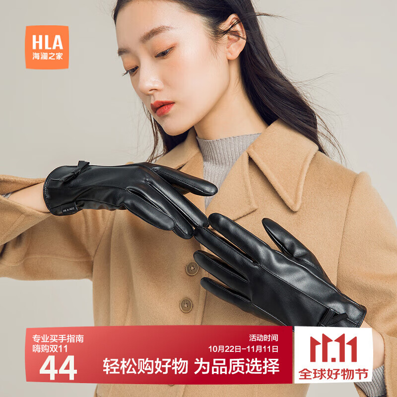 海澜之家(HLA)皮手套女冬季保暖开车骑行可触屏防寒防风时尚户外滑雪
