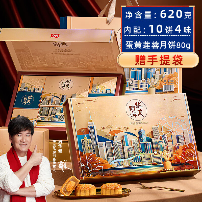 华美 月饼礼盒蛋黄纯白莲蓉月饼中秋送礼团购福利620g