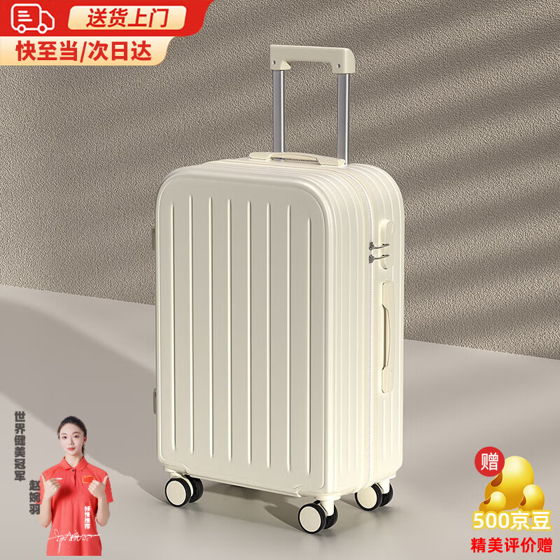 MCHNA KTCC行李箱防爆拉链拉杆箱女结实耐用旅行箱轻音万向轮小型密码箱皮箱 谷物白 20英寸 -可登机