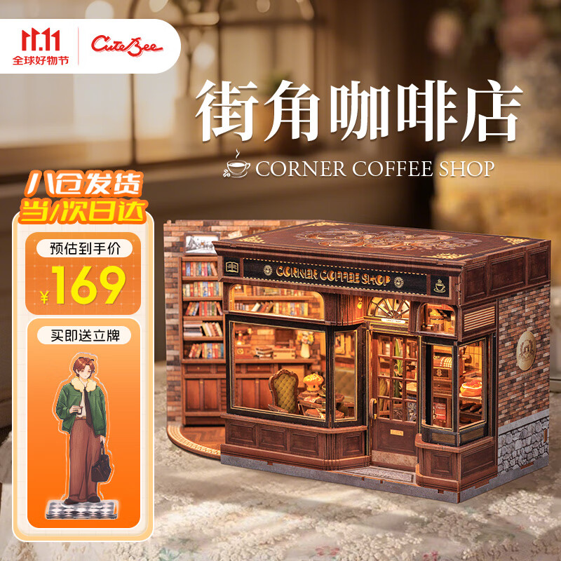 Cutebee【生日礼物】街角咖啡店diy小屋木质积木拼图送礼精致女孩女生