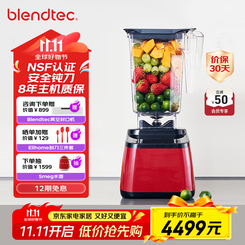 Blendtec柏兰德家用破壁机多功能料理机物理加热安全钝刀1560W大功率触控式按键650红色