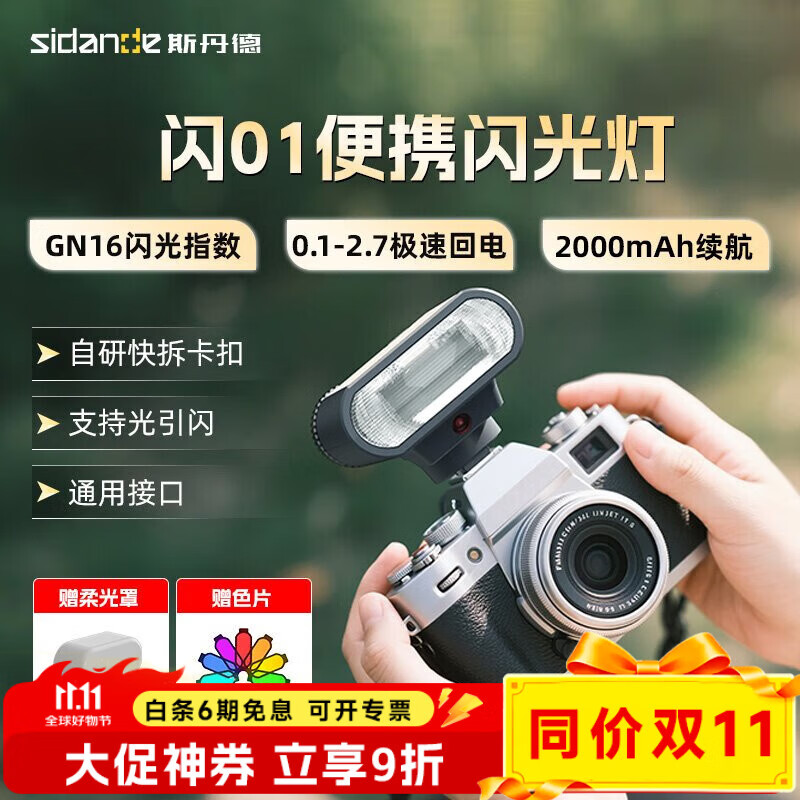 斯丹德(sidande)闪01机顶闪光灯GN16高亮便携摄影灯相机外拍数码微单单反适用通用型接口热靴灯