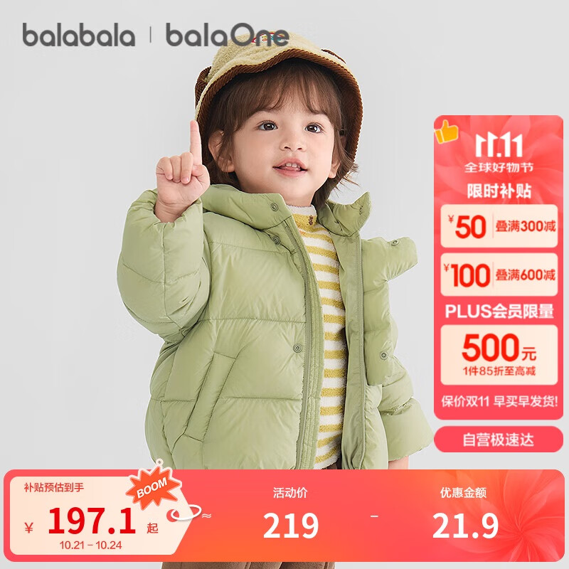 巴拉巴拉童装羽绒服男童女童冬装2025新连帽宝宝加厚萌趣外套208425107203