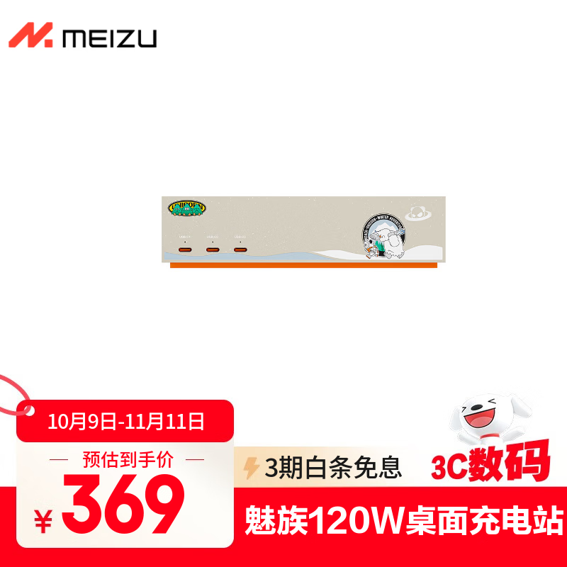 魅族(MEIZU)PANDAER 120W GaN 桌面充电站PRO 白金独角兽 插座插线板 支持电脑/平板/苹果手机等多设备快充